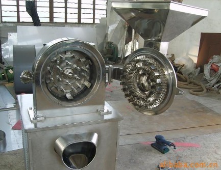主要用途: 本机主要用于化工、医药(中医药)、食品、香料、树脂粉体、涂粉等弱电性物质及耐高温物质的粉碎。 主要特点: 本机采用了风轮式高速旋转刀,定刀进行冲击、剪切、研磨,不但粉碎效果好,而且粉碎时机腔内产生了一定的气流,使粉碎室的热量和成品一起从筛网流出,粉碎细度可由更换筛网来决定。 工作原理: 本机组利用活动齿盘与固定齿盘间的相对运动,内圈粉碎,二次粉碎,三次粉碎,直到物料到达筛网面进行筛选细度,物料经齿盘冲击、磨擦及物料彼此间冲击而获得粉碎,粉碎好的物料自动进入布袋。该机按“GMP”标准设计,全部用不锈钢材料制造,生产过程中无粉尘飞扬,且能提高物料的利用率。 技术参数:
